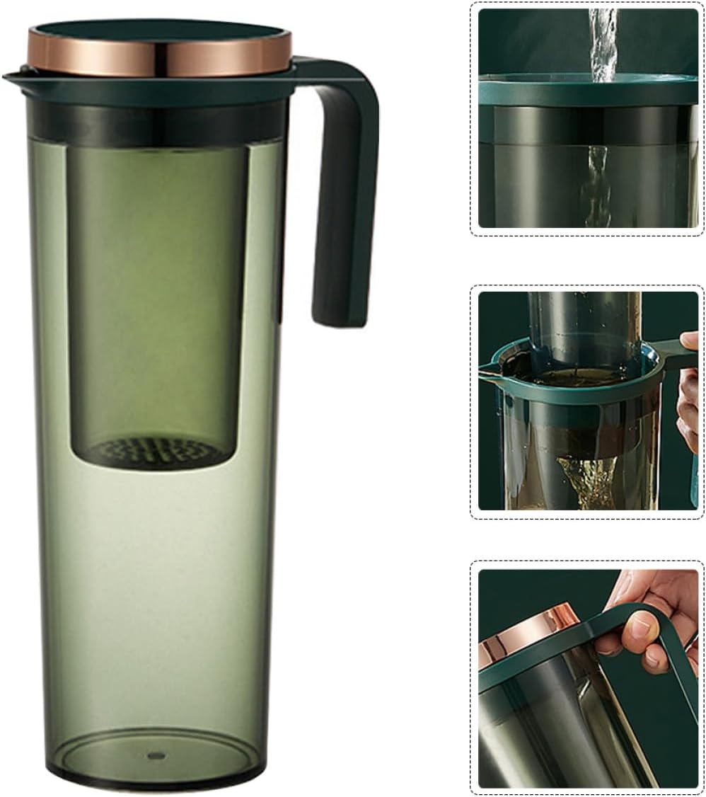 Package List 1 x Cold Water Jug Features -Color: Dark Green -Material: ABS, AS, Silicone -Size(1.2L): 27.00X15.00X9.70cm/10.61X5.89X3.81in -Product Info:Cold water kettle - , good texture with perfect details, can bring a good experience. - The appearance is simple, and it can blend with the decoration of your home. Household Beverage Pitcher - Heat and cold resistance, can be used to store kinds of beverages and tea Drinks Storage Jug. - It can be used as a housewarming to your close friends, they will be happy Large Capacity Teapot. - This jug is designed to be wear-resistant, which has Water Cooling Jug.Goods InformationDrink Pitcher Share with your friends and family as it is a wonderful housewarming .Household Beverage Pitcher This is a practical high temperature resistance water bottle, which is manufactured of , and can be used for a long time