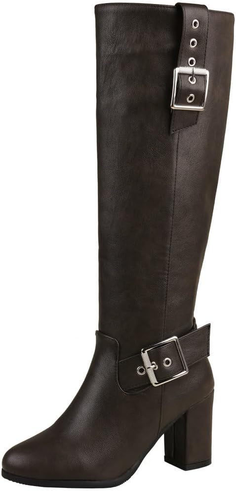 Fall Boots Women Knee High Heel Boots Chunky Knee High Heeled Boots with Zip Up Tall Boots--Giving you a stylish and comfortable experienceBOUT THE PRODUCTS:Material: PUHeel Height: 2.95inchesToe Type: Pointy ToeColor: Black,Dark Brown and BrownSize: 4.5/5/5.5/6/6.5/7/7.5/8/8.5/9/9.5/10/11/11.5/12/13/14chunky knee high boots design.Wear the knee high heeled boots on any occasion, you are definitely the most eye-catching one.
