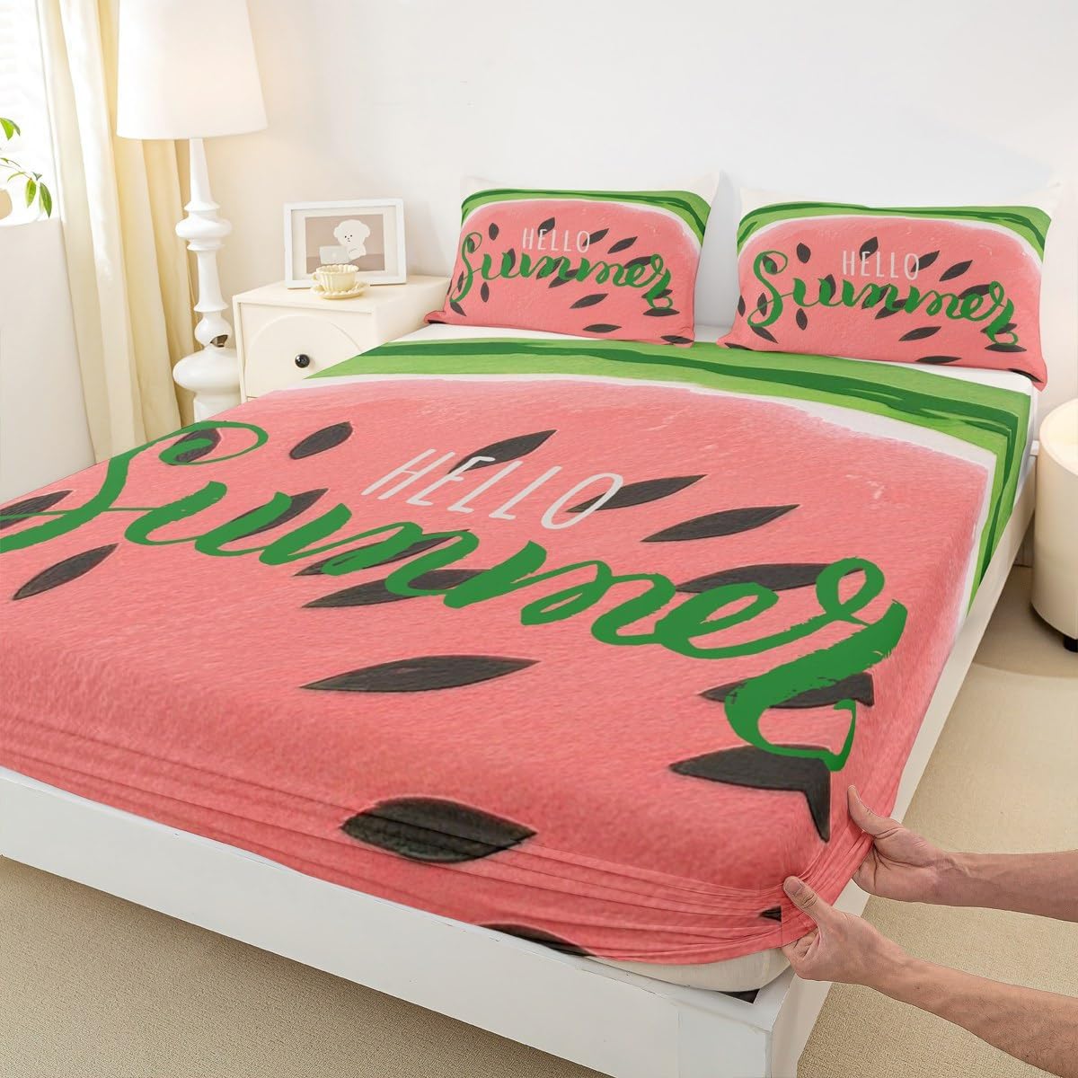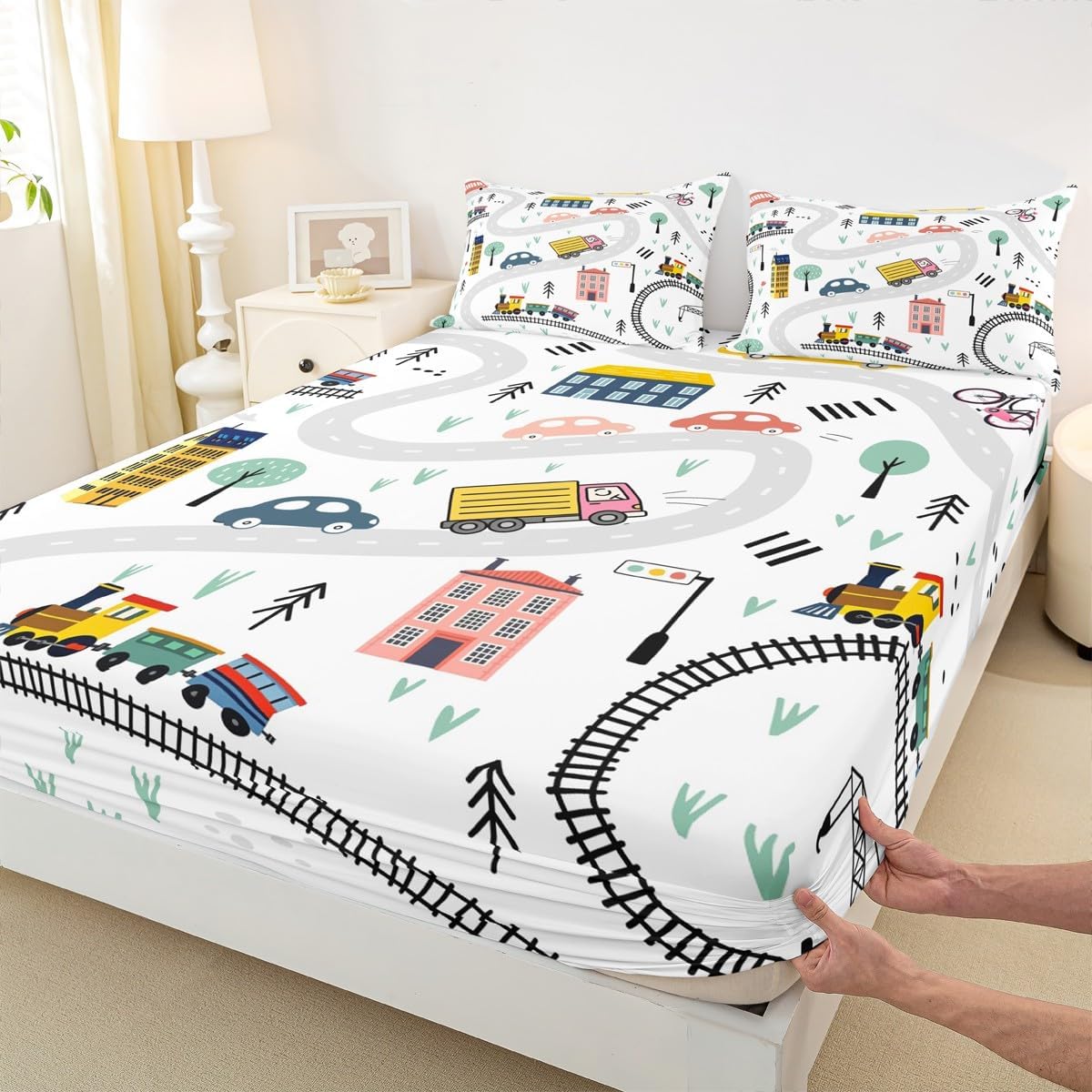 Package Include:fitted sheet,Pillowcase.No flat sheet or top sheet. Fitted sheet set pattern bedding set, simply decorating your rooms any time you want, bringing you fresh feel for year round use. Made from polyester,the sheet set offers long lasting strength,anatural resistance to shrinking and a noticeably soft hand feel. Size Information: Twin size : 1 Fitted Sheet 39"W x 75"L x 16"H ,99 x 190 x 41cm , 1 pillowcase 20" x 30", 51x75cm . Full size : 1 Fitted Sheet 54"W x 75"L x 16"H ,137 x 191x 41cm ,2 pillowcases 20" x 30", 51 x 75cm . Queen size : 1 Fitted Sheet 60"W x 80"L x 16"H ,152 x 203x 41cm ,2 pillowcases 20" x 30", 51 x 75cm . Personalize your bedroom: Beautiful design and colorful print, makes your bedroom unique and brings you a wonderful dream. Washing instructions: Machine wash separately in cold water,hang dry, do not bleach. Occasion: The soft Fitted Sheet bedding sets designed for Children ,Adult, Men, Women, Teens. This Fitted Sheet set is also suitable for full seasons, Spring, Summer, Autumn and Winter.