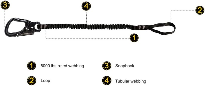 | Model Name | Fusion Tactical 2ft 24"x1" Internal Elastic Bungee Military Police Personal Retention Helo Lanyard with Dual Locking Snap Hook Flat Loop 23kN Black |