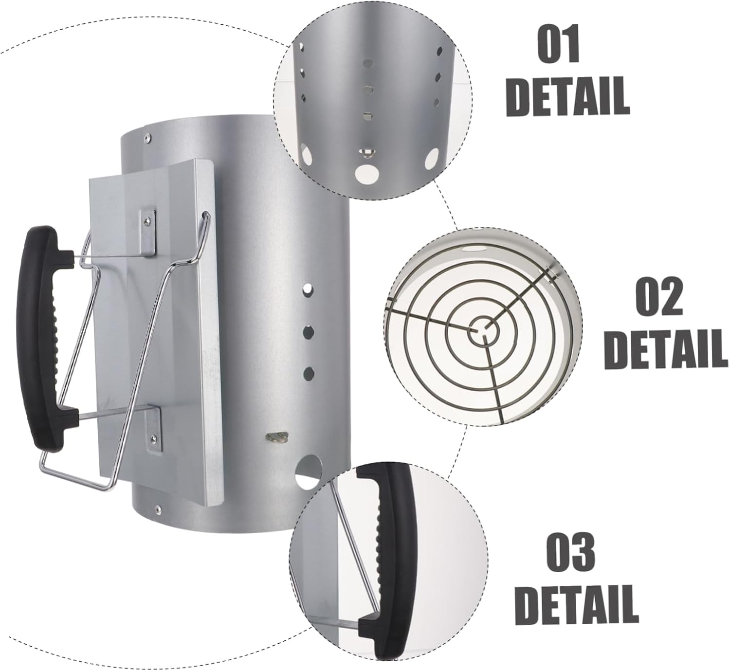 Package List 1 x Charcoal Chimney Starter Features -Material: Galvanize BBQ Grill Lighter. -Color:Silver Barbecue Fire Starter -Size: About 32.00X19.00X30.50cm/12.58X7.47X11.99in Fire Starter Chimney. - The charcoal chimney starter adopts a heat- nylon handle and heat insulation layer to prevent heat transfer Barrel. - The chimney steel starter is galvanized and -proof, and has a . The nylon handle is designed to prevent burns BBQ Ignition Barrel. - Safe, odorless, no peculiar smell to food, tool is faster than the commonly used square starter BBQ Barbecue Fire Starter. - Ideal for , barbecues, , braziers, barbecues, , campfires, pizza ovens Outdoor Barbecue Tool. - This easy to use charcoal chimney starter works fast. With the this chimney starter, your coals light up quickly and evenly Outdoor Cooking Chimney Starter.Goods DescriptionCharcoal Chimney Starter Large diameter holes at the base for lighting your lighter fluid or newspapers to start the charcoal.Fire Starter Chimney The generous ventilation holes on charcoal chimney can canister will ensure the charcoal have excellent air circulation and heat generation.Carbon Stove This charcoal chimney starter is constructed with galvanized