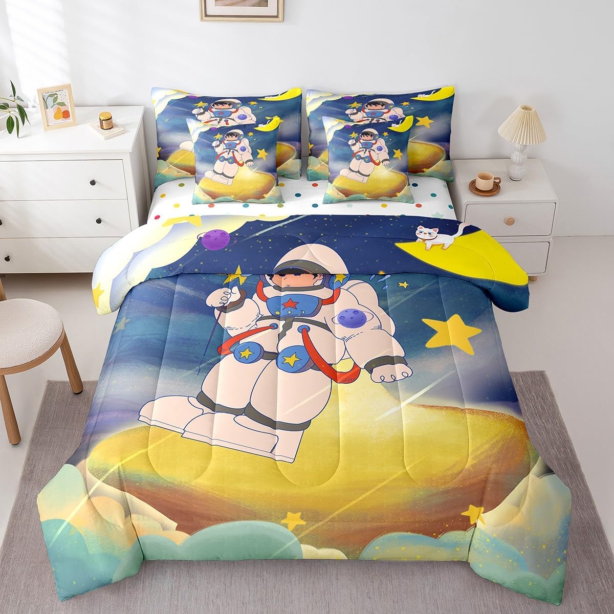| Included Components | Comforter, Fitted Sheet, Flat Sheet/Top Sheet, Pillow Cover, Throw Pillow/Throw Pillow Covers |