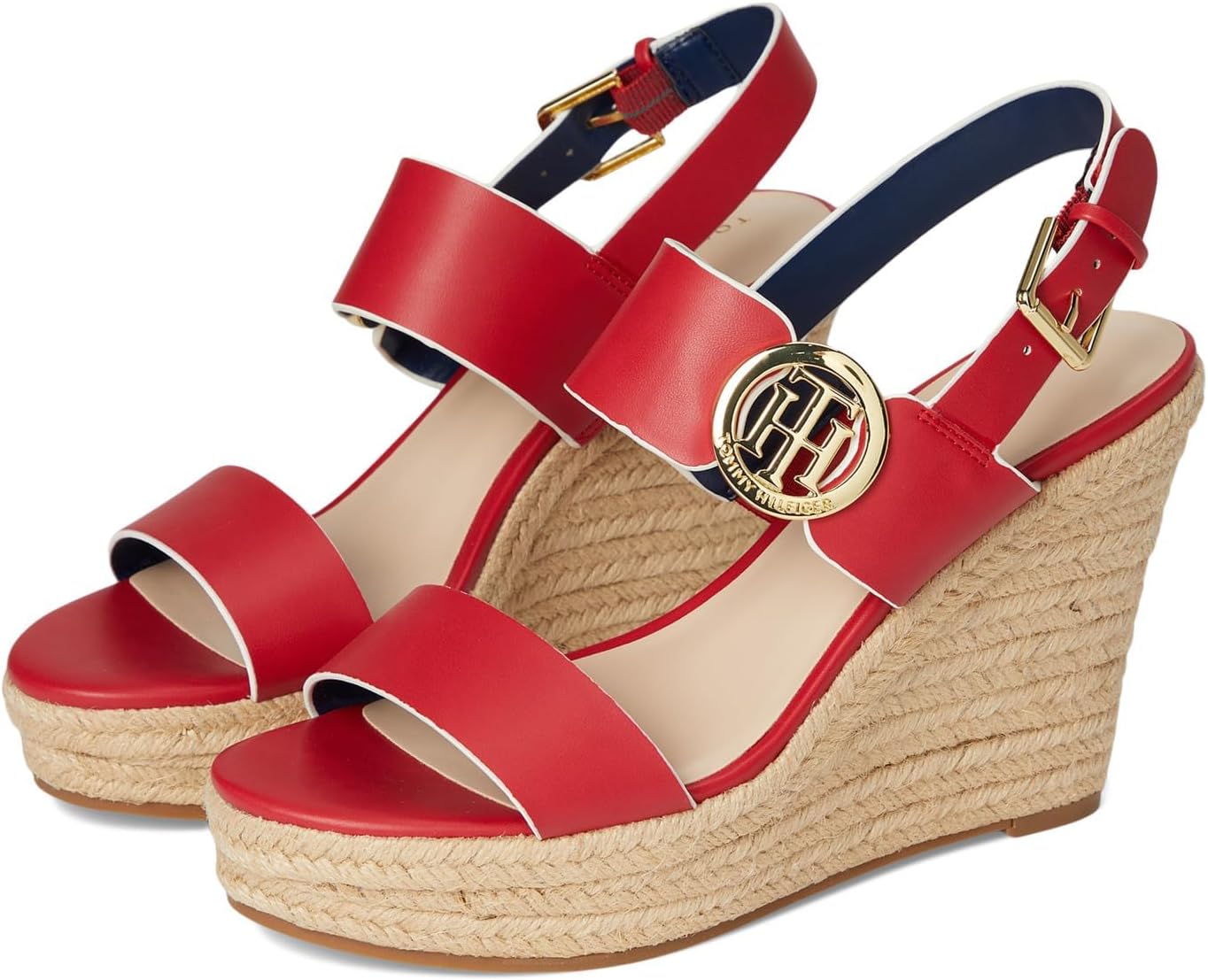 Stun everyone with your style game by opting for Tommy Hilfiger Kahdy Sandals. Crafted with a faux leather upper, man-made lining, and foam footbed, these provide comfort with every step. The wedge heel adds a stunning detail and the adjustable buckle closure on the back strap offers a custom fit. Open round-toe shape. Synthetic rubber outsole.