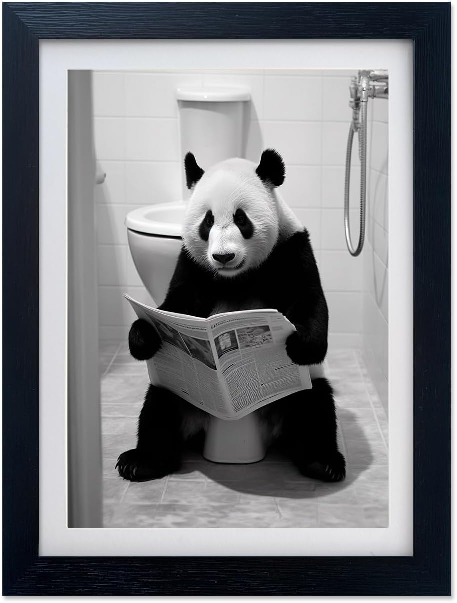 This funny bathroom wall decor print picture on canvas is HD Giclee Artwork. Each panel with Black Frame, HD Acrylic Plate, White Mat, Art Print, Backboard, Waterproof and Dustproof. Keep its colors and patterns vivid and prevent them from fading. Giclee Artwork print bathroom sign canvas wall art decor, eco-solvent ink printing, premium water-proof.Each canvas panel with high quality Black Floating Frame. Black and white animal bathroom art is professionally stretched over the solid wood frame, Framed and Ready to Hang. Each panel has a strong hook already mounted on the wooden bar for easy hanging. Great choice for wall decor such as bathroom , kid’s room, bedroom, dinning room and other home space. Different size of bathroom picture suitable as a gift to family or friends. For Birthday, Wedding, Anniversary, Thanksgiving, Christmas, New Year, Housewarming, Mother's Day, Father's Day, Valentine and others.